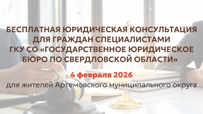 02 Февраля 2026 04.02.2026 Бесплатные юридические консультации для граждан Артемовского МО